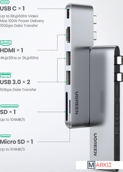 Markit » USB-хабы и док-станции » Док-станция Ugreen CM380 80856