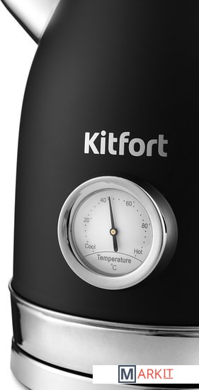 Чайник Kitfort КТ-6102 имеет встроенный термометр, выполненный в винтажном стиле. Это очень удобно для заваривания различных напитков, для которых требуется определённая температура воды. Например, зелёный чай, белый чай, кофе и тд.