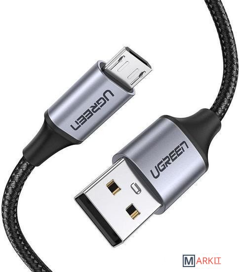 Кабель USB - MicroUSB для зарядки 2 м 2.4А 18W плетеный Ugreen US290 (быстрая зарядка QC 3.0)