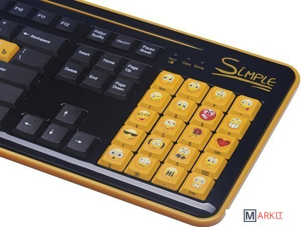 Simple S18 является беспроводным и улучшенным вариантом супер-эмоциональной клавиатуры Simple S8.Клавиатура S18 облегчает общение благодаря тому, что вместо цифрового поля справа, на ней располагается блок специальных клавиш. Каждая клавиша блока представляет собой тот или иной смайлик, что освобождает от набора на основной клавиатуре сложных комбинаций или выбора нужного эмотикона из списка используемой программы. Пользователь такого гаджета сможет одним нажатием кнопки выразить необходимую эмоцию.