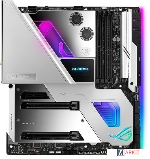 Оптимизированное охлаждение: встроенный ватерблок EK для силовых элементов, процессора и чипсета, термопрокладки с высокой теплопроводностью, пять радиаторов M.2 с усилительными пластинами, разъемы для подключения СВО.Для энтузиастов: предустановленная корпусная заглушка, переключатель V_Latch, удобное обновление прошивки (BIOS FlashBack), диагностический индикатор Q-Code, перепрограммируемая кнопка перезагрузки (FlexKey), Q-Connector, технология SafeSlot, кронштейн для видеокарты.Дополнительное программное обеспечение: 1-годичная подписка на AIDA64 Extreme и встроенная в интерфейс UEFI BIOS утилита MemTest86.