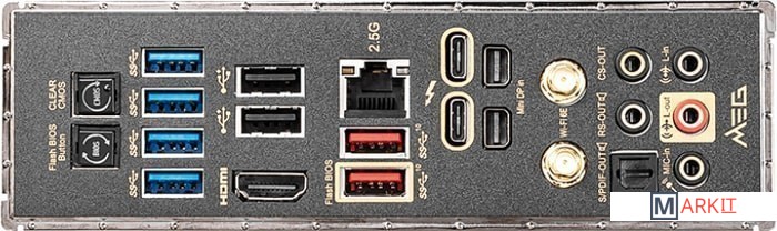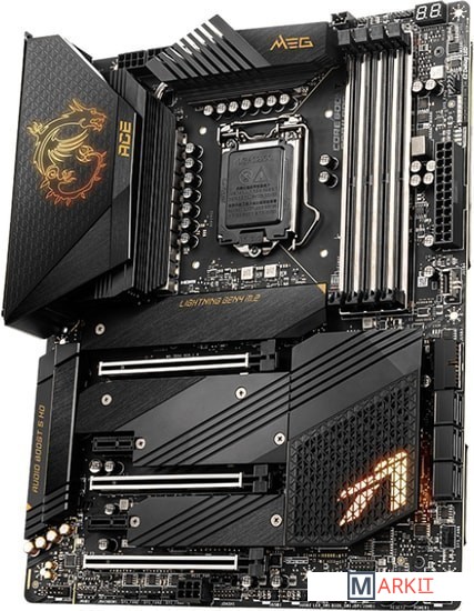 Поддержка процессоров 12-го поколения Intel® Core™, Pentium® Gold и Celeron® для сокета LGA 1700Поддержка памяти DDR5 с частотой до 6666 МГц (в режиме разгона)Эстетичный премиум дизайн в темных тонах, с радиатором, позолоченным настоящим золотом 24 карат.Два порта Thunderbolt 4: разъем USB-C, пропускная способность 40 Гбит/с, поддержка дисплеев с разрешением 8K, последовательное подключение устройств, многопортовая архитектура.На плате имеется сразу пять слотов M.2, четыре из которых работают в режиме PCIe 4.0. Они снабжены двухсторонними радиаторами M.2 Shield Frozr.19+1+2 фазы питания: благодаря высококачественной элементной базе, включающей 105-амперные силовые модули и дроссели Titanium Choke III, система питания будет работать безукоризненно даже в самых экстремальных условиях.Великолепное охлаждение: алюминиевый кожух , тепловая трубка в зоне VRM, термопрокладки, двухсторонний M.2 Shield Frozr и алюминиевый бэкплейт.Два порта проводной сети стандарта 2.5G Ethernet, дополненный трафик-менеджером и новейший беспроводной модуль Wi-Fi 6E обеспечат комфортную игру через интернет с минимальными лагами.Высокоскоростные интерфейсы: PCIe 5.0, Lightning Gen 4 x4 M.2 Front & Rear USB 3.2 Gen 2x2 20G.8-слойная печатная плата с повышенным содержанием меди: обеспечивает повышенную стабильность работы компьютера в долгосрочной перспективе.Audio Boost 5 HD: Высококачественное звучание, создающее неповторимую атмосферу в играх.