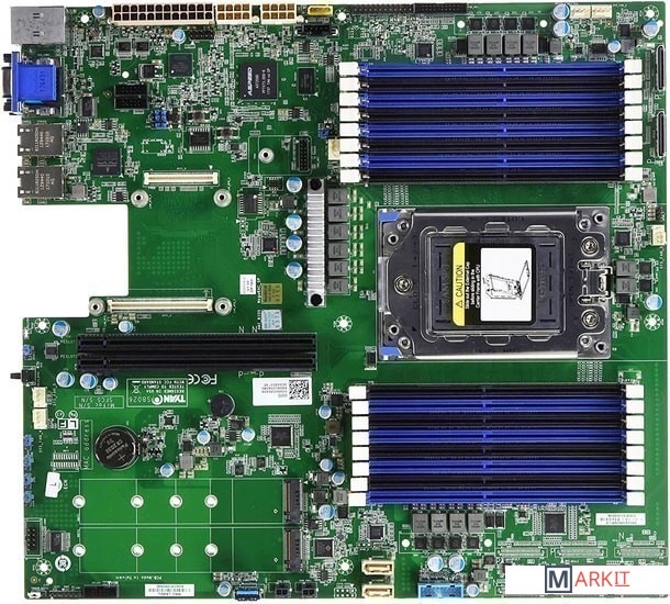 На задней панели располагается RJ-45, который является выделенным портом управления.Плата оснащена двумя слотами PCI Express x24, которые служат для установки высокоскоростных дисковых и сетевых контроллеров посредством соответствующей райзер-карты.