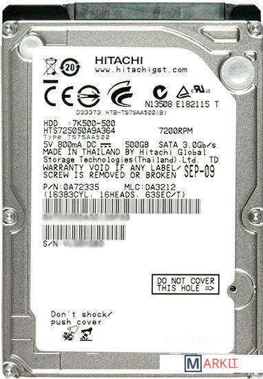 Markit » Жесткие диски » Жесткий диск Hitachi Travelstar 7K500 500 Гб (HTS725050A9A364)